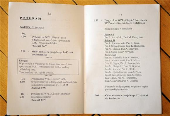 Zgodnie z tym programem (u góry) w saloniku III miało być 18 osób. W jaki sposób mogły się zmieścić w 8-osobowym pomieszczeniu na pokładzie tupolewa? To pytanie stawiam za blogerem 154. http://centralaantykomunizmu.blogspot.com/2011/06/salonik-iii.html